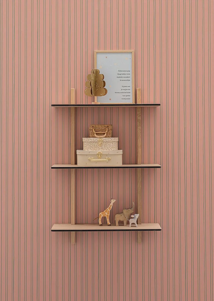 Dit mooie behang van Bibelotte heeft een fijne groene streep op een frambooskleurige achtergrond. Een heel tijdloos ontwerp en past op elke plek in huis. Behang brengt saaie muren in een kinderkamer meteen tot leven. De collectie behang van Bibelotte bestaat uit vele unieke prints voor elke kinderkamer. Van babykamer tot tienerkamer, door de tijdloze dessins zal jouw kind een lange tijd plezier hebben van het behang.