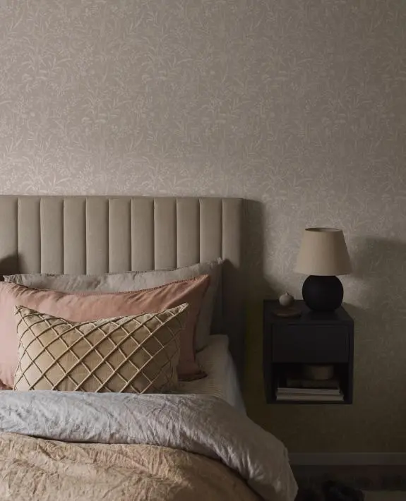 Florian’s elegante patroon van gestileerde weideplanten is afkomstig uit ons historische behangarchief, en dit Florian behang voelt zich net zo thuis in moderne huizen als in meer traditionele omgevingen.