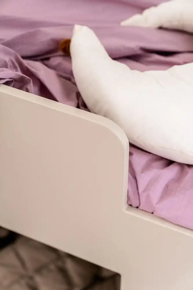 Het bed wordt gemaakt van PEFC gekeurd MDF. Het wordt materiaal wordt glad geschuurd en daarna wordt het behandeld in onze eigen spuitcabine met een hoogwaardige lak waardoor het resultaat super strak oogt. De kleur is speciaal voor ons ontwikkeld en heeft een warme rustige tint, tijdloos zodat deze jaren mee gaat en overal bij past! Daarnaast is de watergedragen lak makkelijk afneembaar én beschermt het bed tegen krassen en deukjes. Deze lak is uitvoerig getest en voldoet aan strenge eisen.
