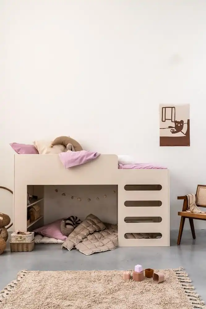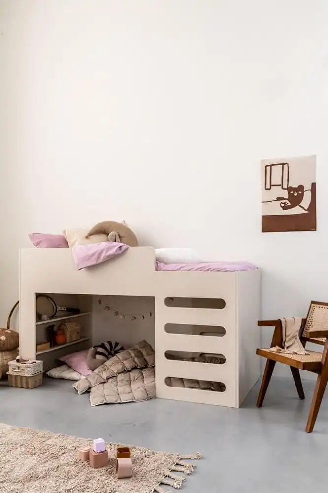 Het low loft bed is een goede oplossing wanneer je klein behuisd bent. Met het low loft bed Riva creëer je extra speelruimte onder het bed. Kinderen vinden het stoer om op een hoger bed te slapen, ze voelen zich dan ook echt groot. En, fijn pluspunt voor de ouders: het is makkelijk om het beddengoed van een low loft bed te verschonen doordat deze lager is dan een klassieke hoogslaper.