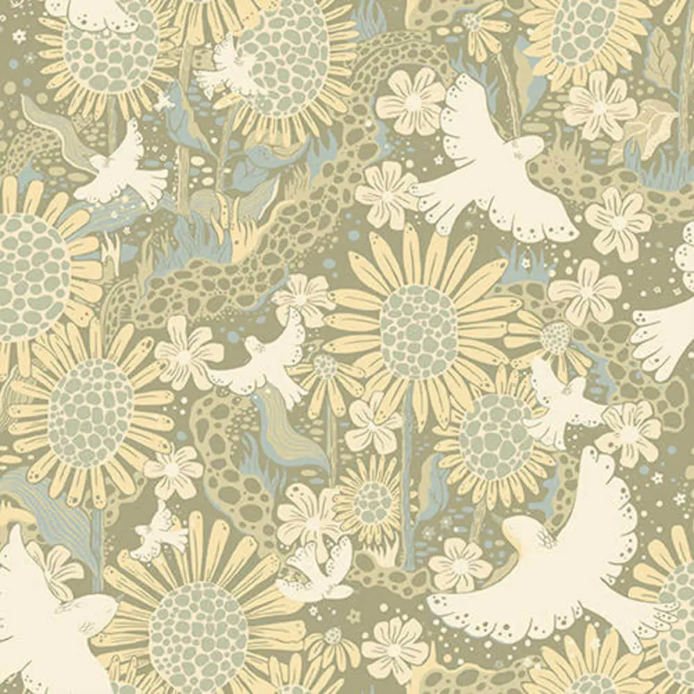 Een romantisch patroon van Midbec Tapeter heeft een patroon met bloemen en dieren
