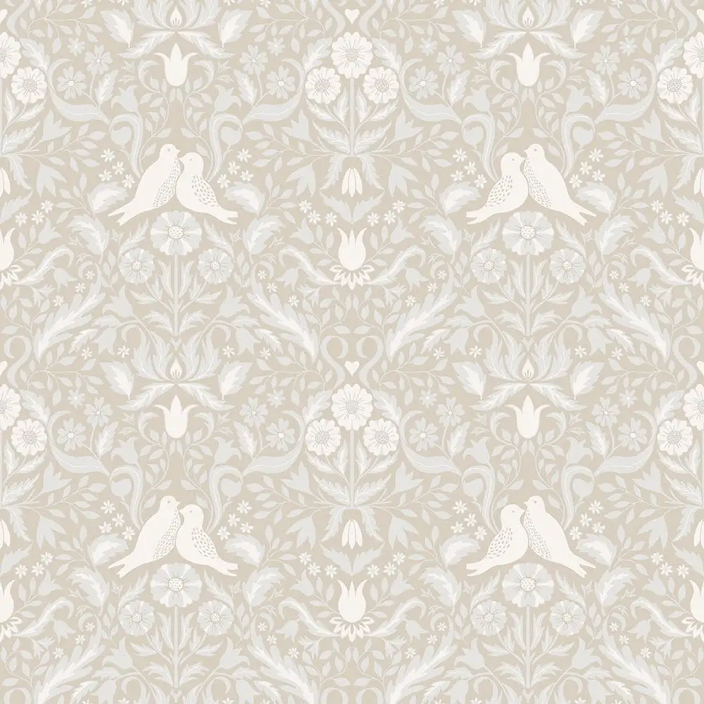 Dit rustige behang met vogels en bloemen weet romantische, klassieke en landelijke stijl in hetzelfde patroon te stippelen. Deze beauty van Midbec Tapeter is verkrijgbaar in vier rustige kleuren.