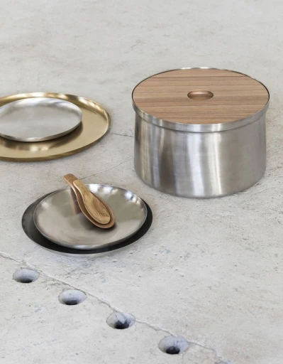De diepe borden uit mat roestvrij staal vallen op door hun tijdloze eenvoud. De drie borden hebben een diameter van 17,5 cm, 22,5 cm of 26 cm en kunnen dankzij hun diepte ook als kommen of schaaltjes gebruikt worden.